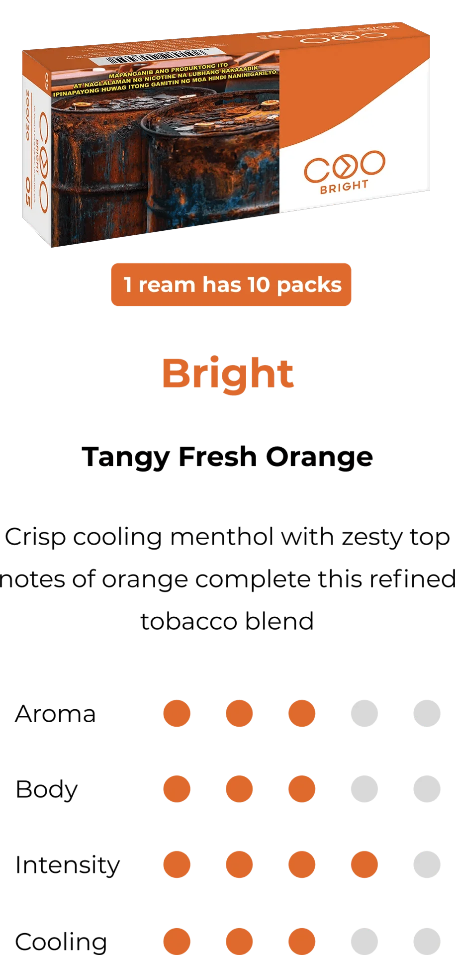 COO is specially designed heat-not-burn tobacco sticks. Each COO stick contains real tobacco leaves formulated to provide a highly satisfying flavor pay-off, richer bolder aromas, and authentic tobacco flavors.