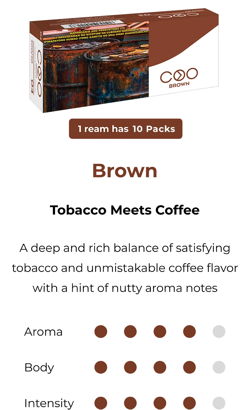 COO is specially designed heat-not-burn tobacco sticks. Each COO stick contains real tobacco leaves formulated to provide a highly satisfying flavor pay-off, richer bolder aromas, and authentic tobacco flavors.